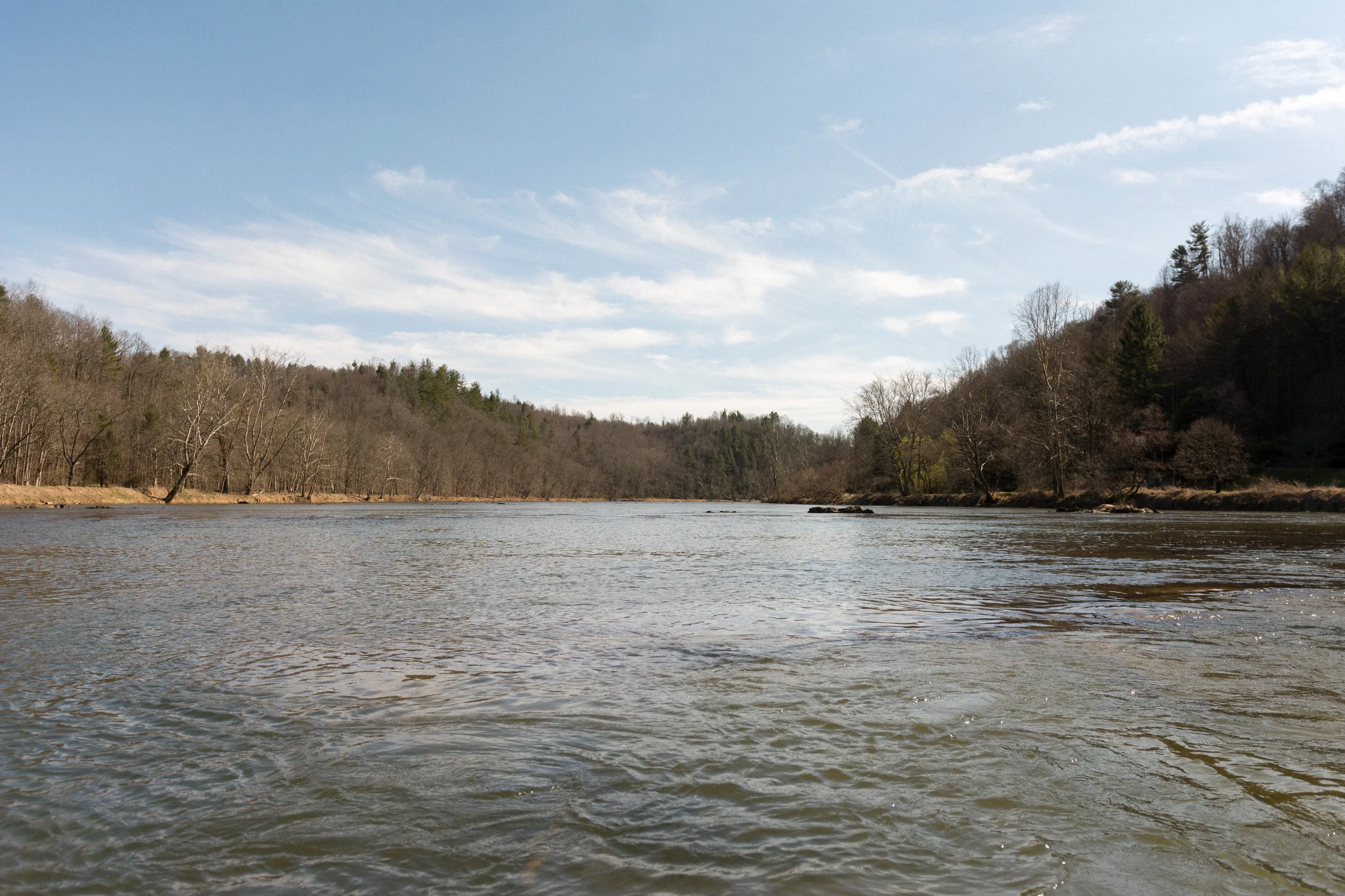We spent the morning suspended in the meanders of the New River as it flows back and forth across the Virginia and North Carolina lines. The water level was low and there were a many rocks reaching up from the shallows, doing their best to impede our way down the river. This early in the season, we were the only people floating down the river, and there were just a smattering of people doing anything at all on the river banks. We found better company in the two does that came down to the river side for a drink than any people. Where the river lies, deep between ancient mountains, the sun graced us with its warmth just briefly as it rose at ten in the morning, and set hardly two hours later.